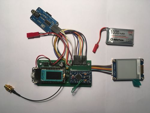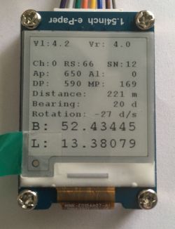 Das E-Paper-Display habe ich jetzt am Arduino Pro Mini als Co-Prozessor zum Laufen gebracht. Es ist in der Ansteuerung leider ziemlich langsam. Ich habe es aber geschafft, dass keine Events verloren gehen. Lediglich bei den vorübergehenden Zuständen (Altitude, RSSI/SNR) kann es passieren, dass deren Anzeige ausgelassen wird. Außerdem läuft die Anzeige noch eine Weile nach erfolgter Landung nach.