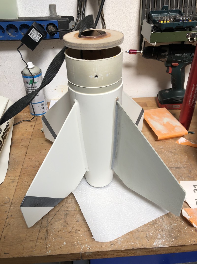 Kann man das auch selbst sindern? oder ist das ein spezieller Prozess? Man könnte die Teile noch gleitschleifen, das dürfte sie schön glatt und gratfrei machen. Ich habe heute mal ein altes Schätzchen renoviert: Meine L1-Rakete :-) gebaut vor ca. 14 Jahren hatte sie einen Flügel verloren bei einer harten Landung. Der wurde dank aufgehobener Pappschablone neu gesägt, laminiert, und jetzt eingeklebt. Heute war Schleifen dran, da die Farbe nicht mehr weiß sondern gelb ist (die Sonne...) muss ich sie wohl komplett neu lackieren. Habe damals Baumarktfarbe verwendet die nicht UV-Fest war.