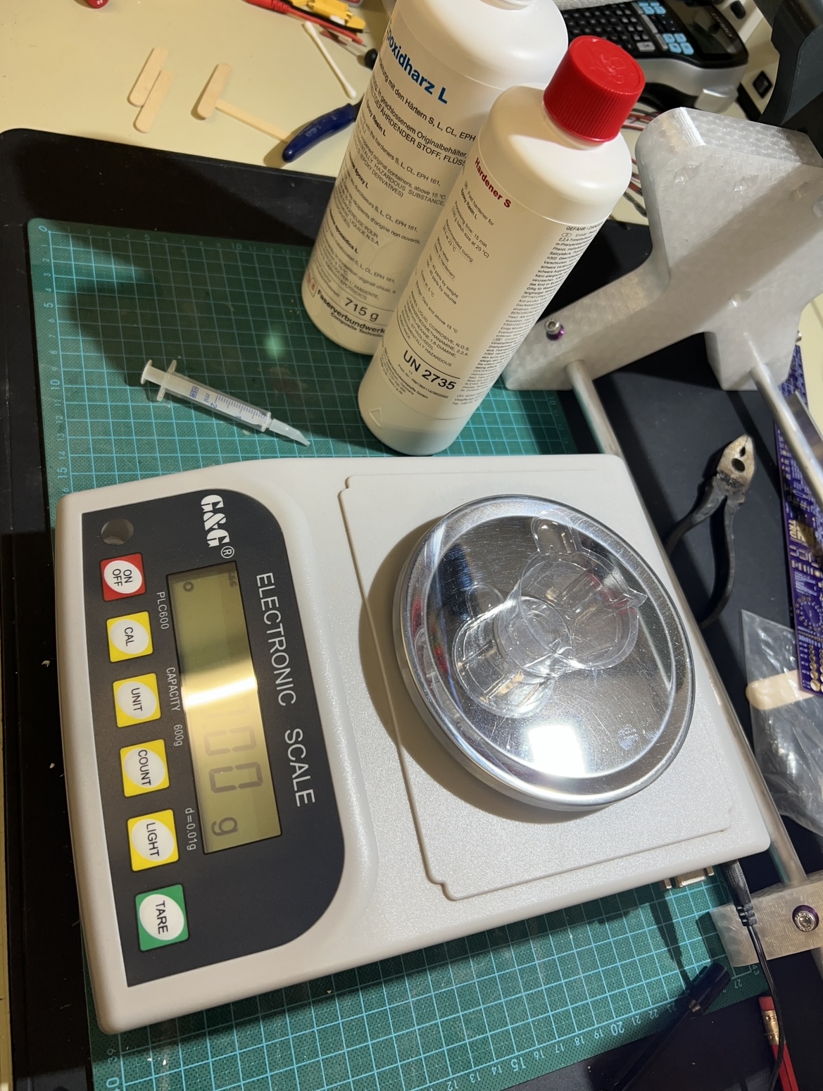 die graue Farbe der Fillets lässt mich vermuten, dass Du das Epoxy angedickt hast, oder? Falls ja, mit was und in welchem Verhältnis?