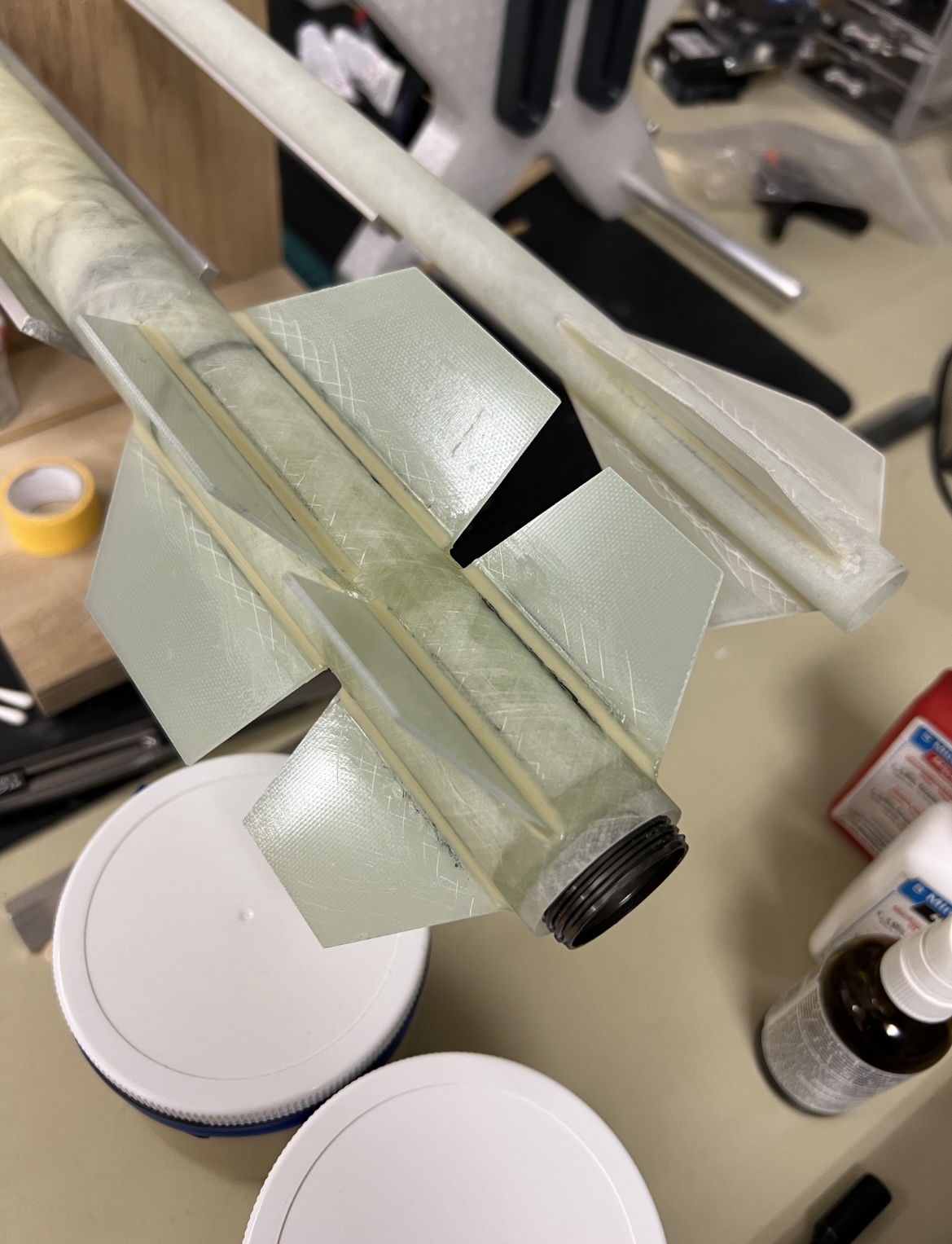 Alle Fillets sind dran … Schubring bei der kleinen sitzt und ich habe wieder einen asymmetrischen Ankerpunkt gebastelt .. Mit einer Alu Rohr / Kohle Vollstab Kombi … hier werden später Shockcord und Rettungsleine für das Motorcasing angebracht Soweit mal der Stand … Grüße Marco