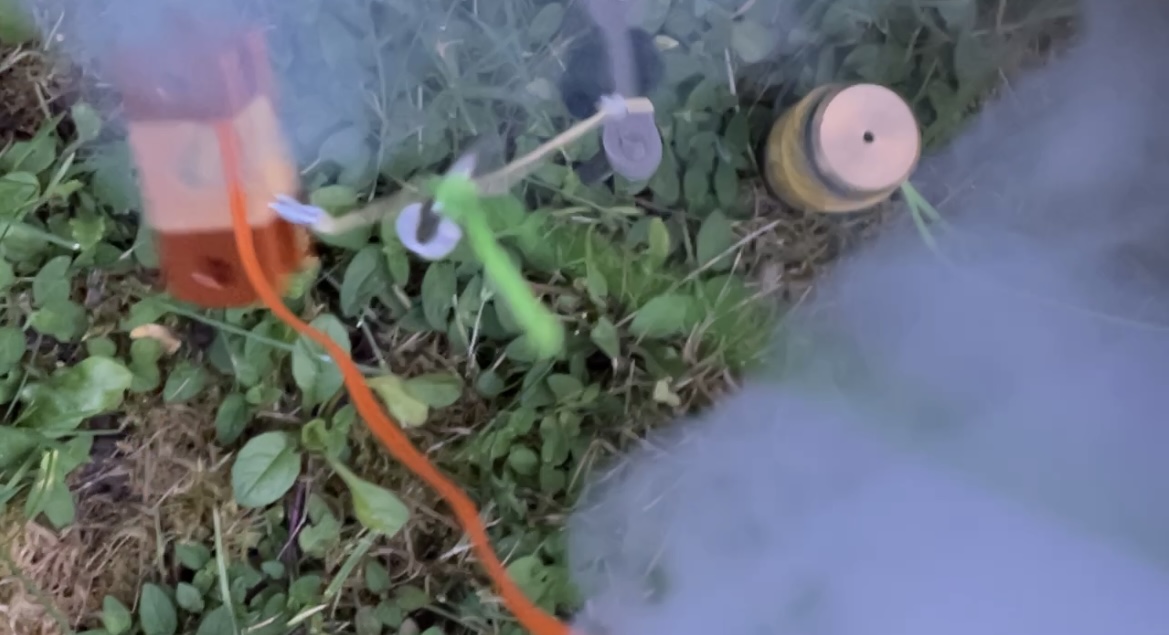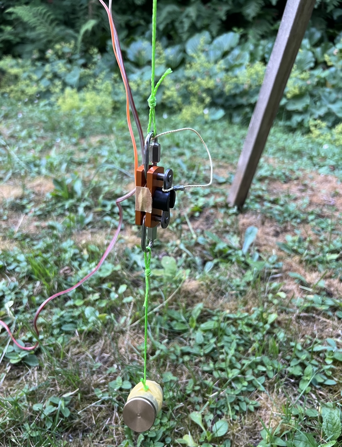 Der Federstahlhaken ist durch mehrere Starts schon so ausgeglüht, dass von Federwirkung keine Rede mehr sein kann. Beim letzten Flug ist mir der Motore rausgeflogen, zum Glück aber noch der Fallschirm gekommen. Und der Durchmesser würde sogar eine bessere Aerodynamik ergeben, obwohl das bei der ansonsten doch etwas plumpen Form wohl nicht viel ausmacht; fliegt mit einem D9 gerade mal auf ca. 140 m.