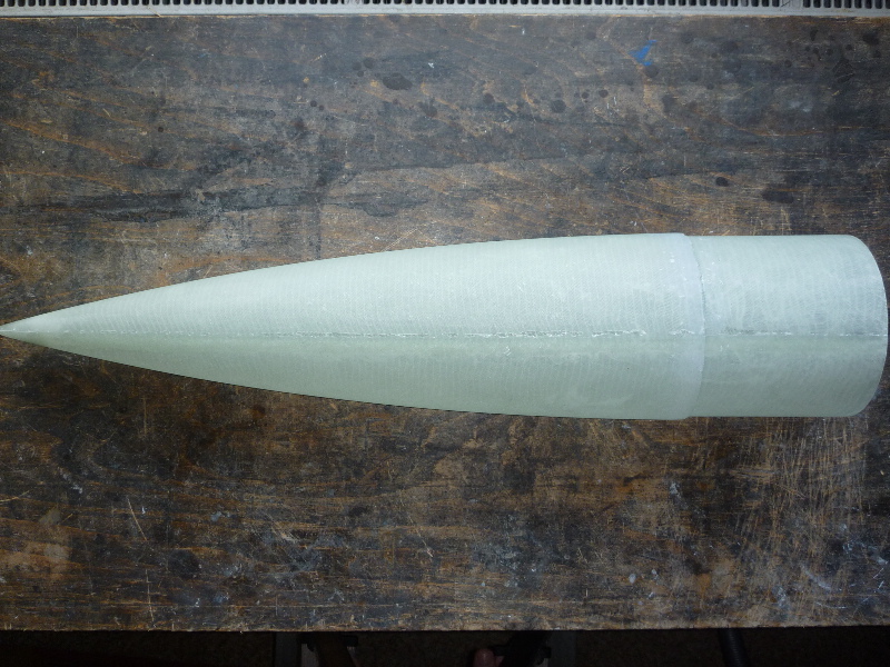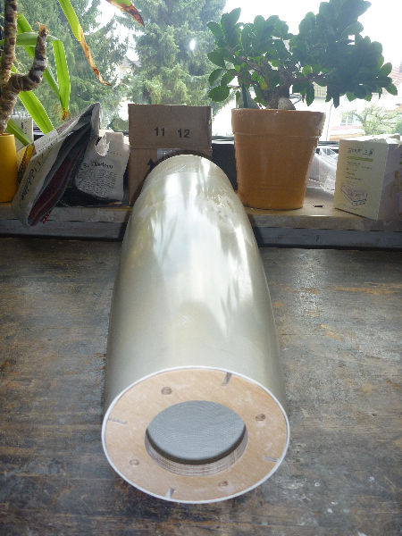 Damit es überhaupt mal voran geht, gibt es ein paar Planänderungen: Das Mittelrohr wird nicht aus GFK gebaut, sondern ein mit GFK-verstärktes Phenolharz-Rohr. Für die Hüllenteile mache ich keine weitere Spitze aus der Form, sondern nehme die PML-Spitze. Das Bergungssytem soll nun ein Klappenmechanismus werden, da brauche ich noch viele Tipps.