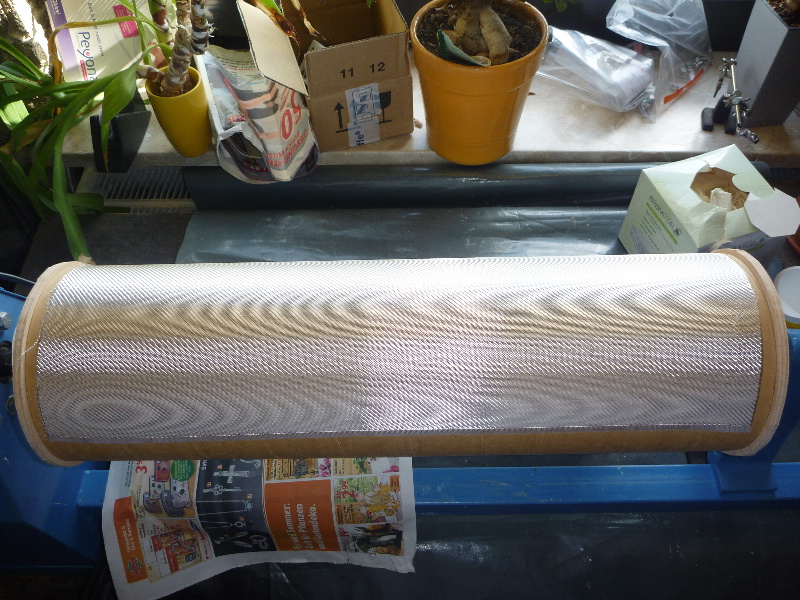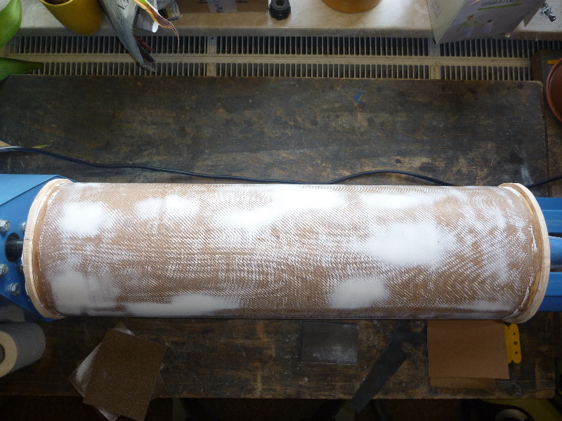 Die beiden Hälften werden dann nach der "naß-in-naß-Methode", mit noch reaktivem Epoxy, mit jeweils ca. 1cm Überlappenden Längsenden zusammengefügt.