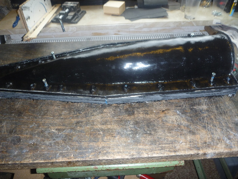 Die Flossen aus 3mm starkem GFK kann ich selber nicht vernünftig bearbeiten. Aber Holger kann es. Die hab ich mir diesmal anfertigen lassen: