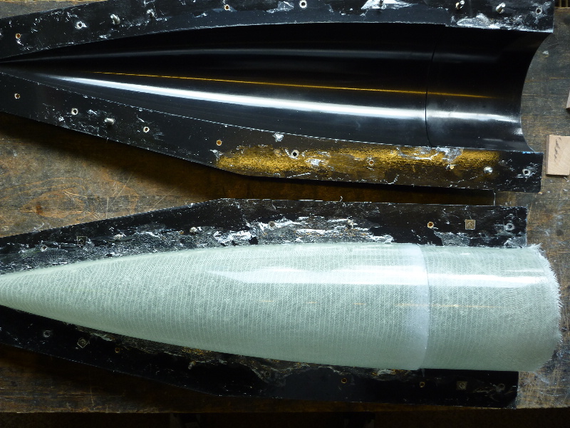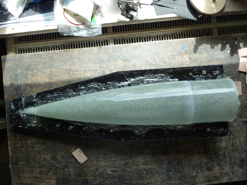 und ein Heck aus GFK. Die Form eingetrennt und die Glasgewebe vorbereitet: