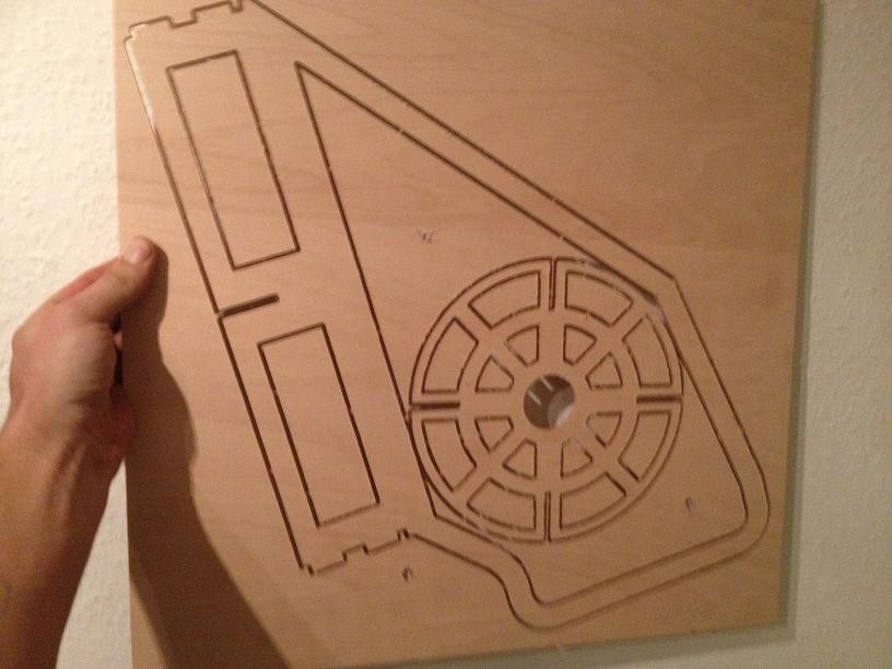 Habe inzwischen gute Parameter für das Holz gefunden. Ich habe nur die Stege mit einem Cuttex abgeschnitten, sonst nichts entgratet: