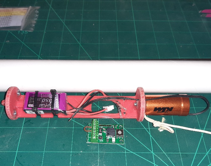 Ist aber gar nicht so leicht alles in einer Rakete mit 35mm zu verbauen. Die orange Aludose für die Ausstoßladung lag zum Glück noch rum, da waren mal Ohrstöpsel fürs Moto GP Rennen drin.