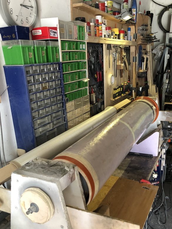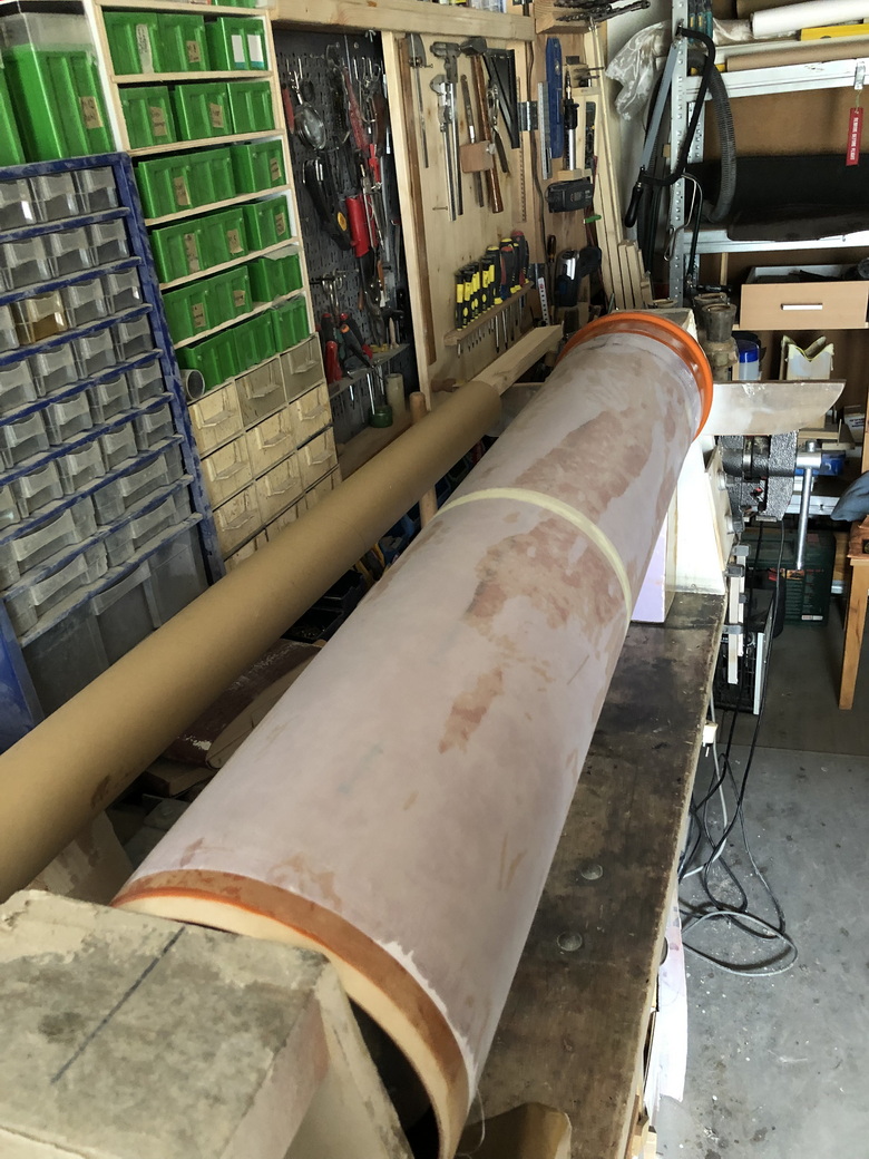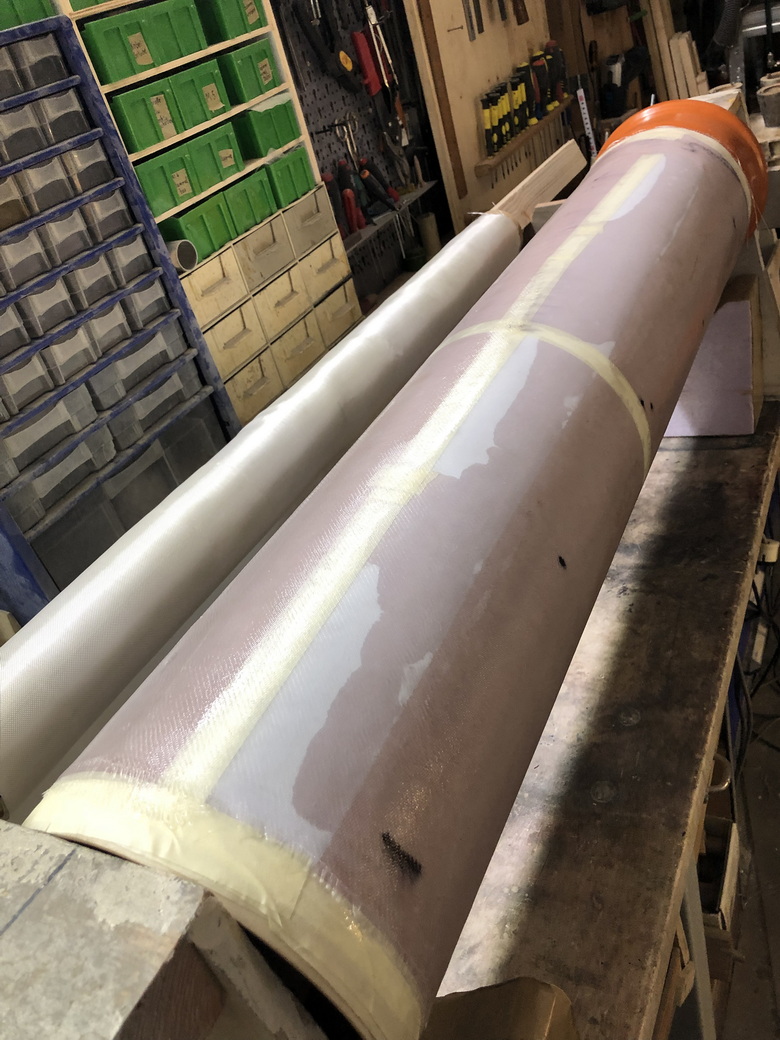 Nun ist das Material der Hauptstufe (die geraden Teile) fast fertig. Die große Tube der Hauptstufe habe ich heute laminiert.