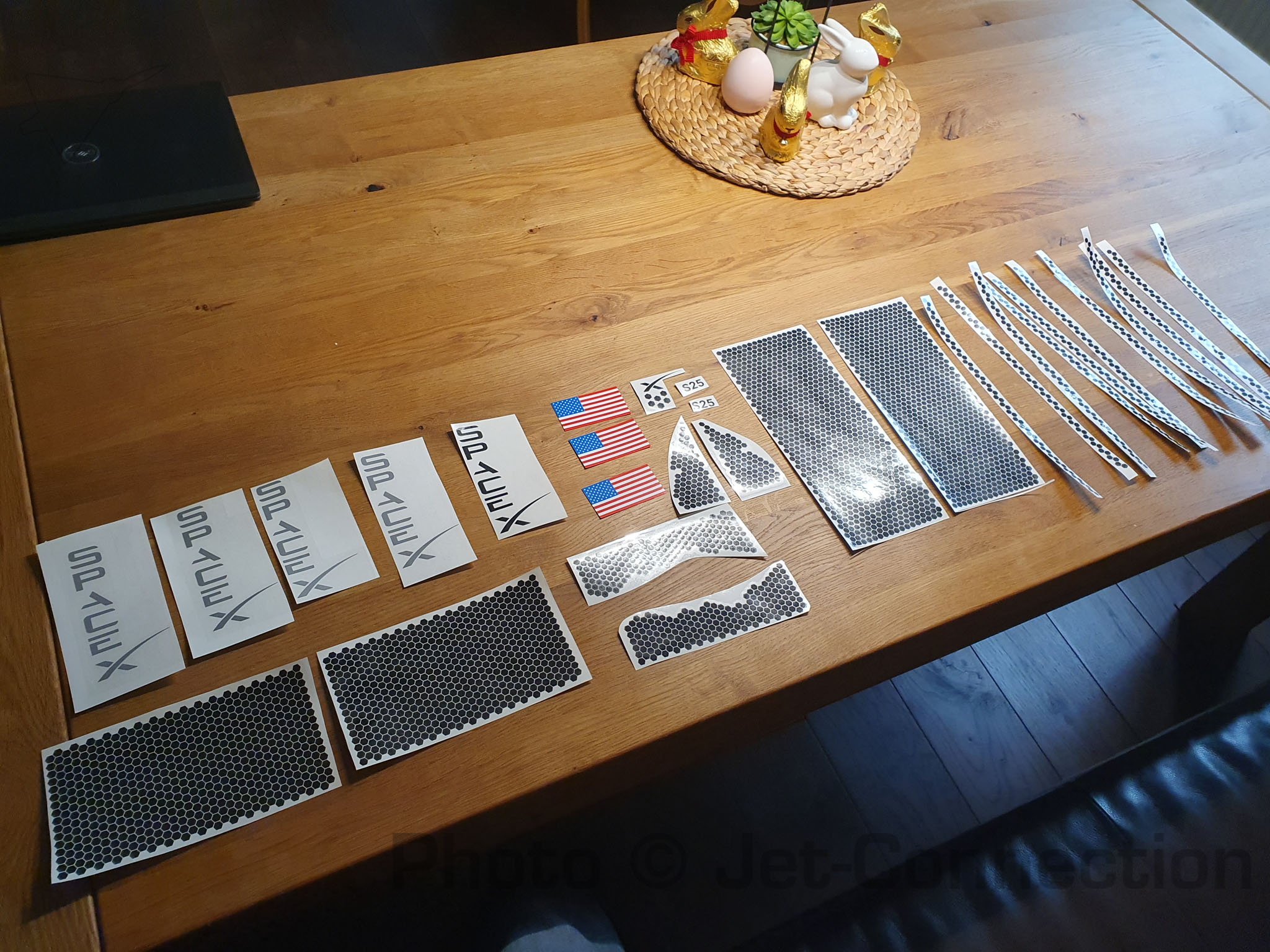 Das Starship liegt bei mir momentan im Korridor. Hier habe ich die optimale gleichmäßige Temperatur, welche offenbar wichtig zum aufkleben der Folien ist. Ist trotzdem nicht ganz einfach das alles an die richtige Stelle zu pappen. Ein paar Tage brauche ich noch bis sie ganz fertig ist. Grüße Rolli