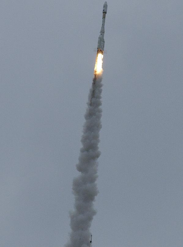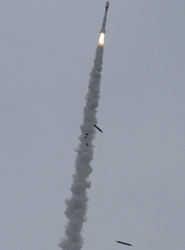 Hier der Abwurf der kleinen Booster (nur einer sichtbar am unteren Bildrand).