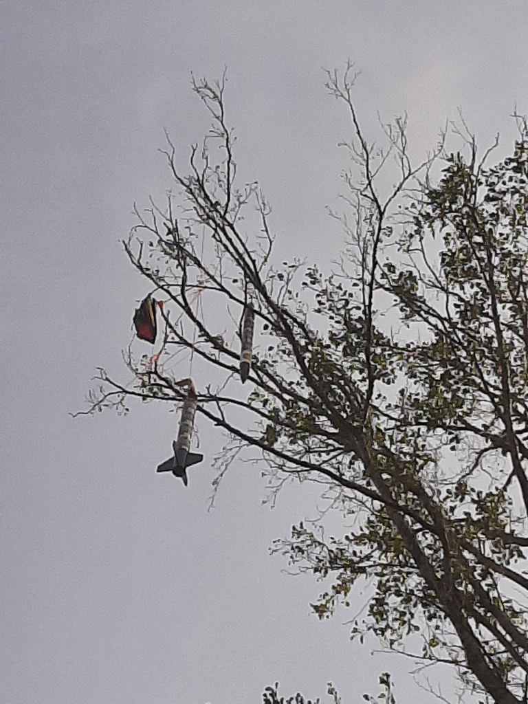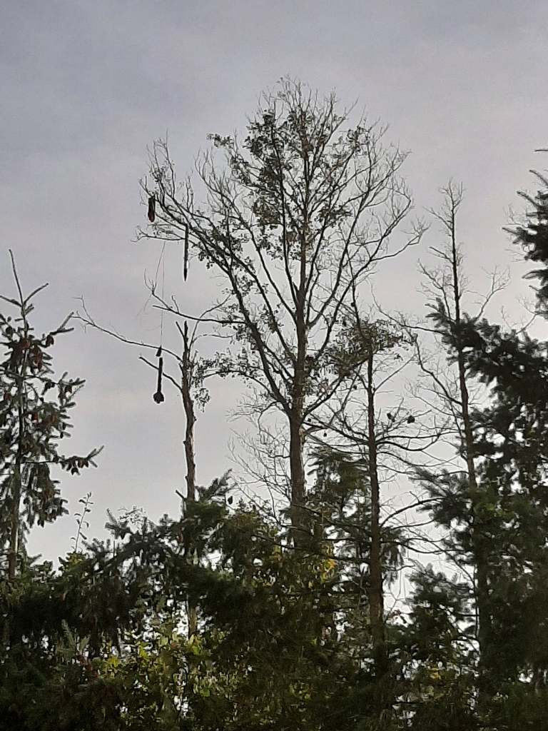 Und bitte nicht täuschen lassen, das ist natürlich der höchste Baum am Waldrand mit ca.50cm Stammdurchmesser und das Modell hängt in Ca 20 Metern Höhe...