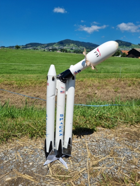 Hat bei Tests gut funktioniert beim echten Flug hat sich nur ein Booster gelöst, hatte da wahrscheinlich zu wenig SP genommen....
