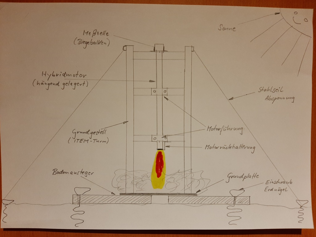 Wenn ich einen großen Motor montiere, muss ja der erzeugte Schub irgendwie daran gehindert werden, den Messstand in die Höhe zu heben. Daher die Idee mit den sich gegenseitig aufhebenden Kräften.