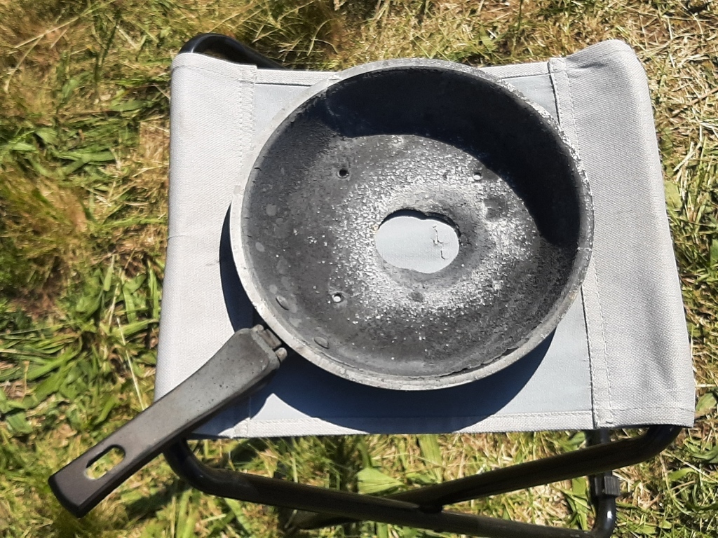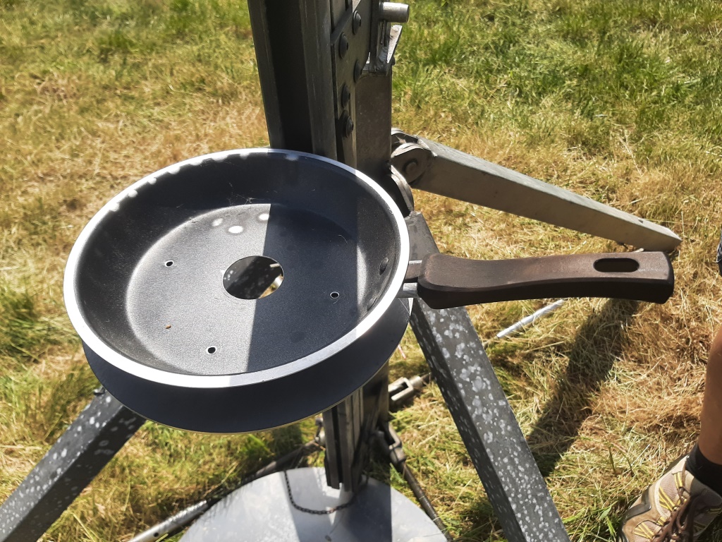 Darauf kommt dann die bereits bewährte klassische offene Zünd (Brat)-Pfanne... diese wird ebenfalls fest verschraubt,