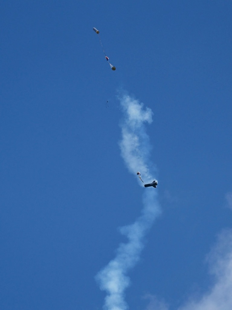 nicht fest genung an der Schockleine befestigt, so das sich dieses beim Heckteil mit den Fallschirmleinen verhäddert hatte,