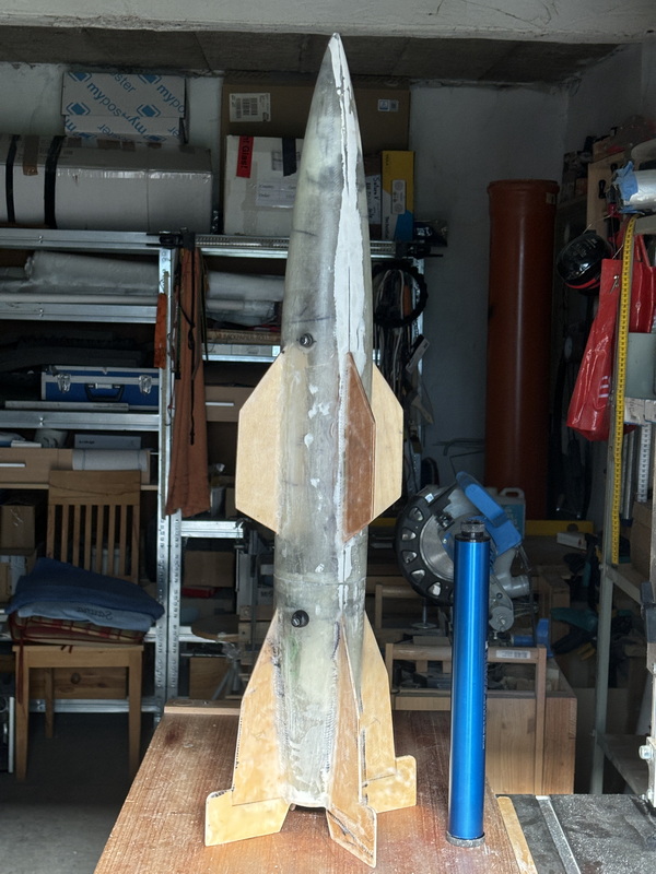 Nachdem ich ein neues 38er Motorrohr hergestellt hatte, welches auch passend in den Heckkuppler eingeklebt wurde. könnte ich jedenfalls alle 38er Motoren fliegen Dadurch dass der Motorausstoß in einem separaten Kuppler statt findet, braucht man sich um verschmorte Fallschirme und Schockbänder keine Sorgen machen. Schockband und Fallschirm werden zwischen Kupplerrohr und Außenwandung untergebracht. Das kuppeln funktioniert, alles passt und mir ist heute ein Stein von meinem Bastlerherz gefallen. Rolli