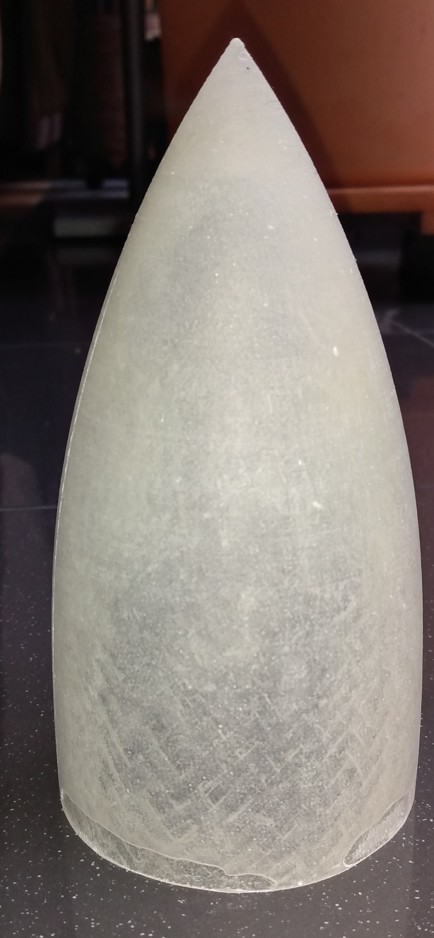Wie erwartet beim Entformen Probleme, trotz Trennwachs. Einen Tag gebe ich dem Teil noch, dann kommt Gewalt ins Spiel. Derweil habe ich mir die Zeit mit Geilen, Bohren und Sägen verbracht und ein Pyro-Release geschnitzt. Jetzt tun mir die Hände weh. Entgegen der Schelter Mittentrennung habe ich mich für 2 stufige Bergung über die Spitze entschieden.