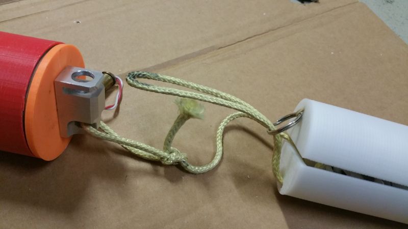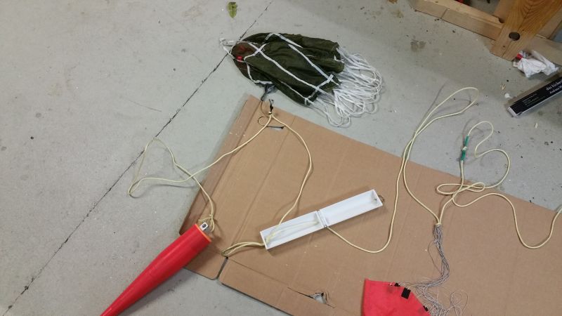 Bei erreichen der Mindesthöhe drückt der SN0 den Bolzen aus der Halterung und der Fallschirm wir freigegeben.