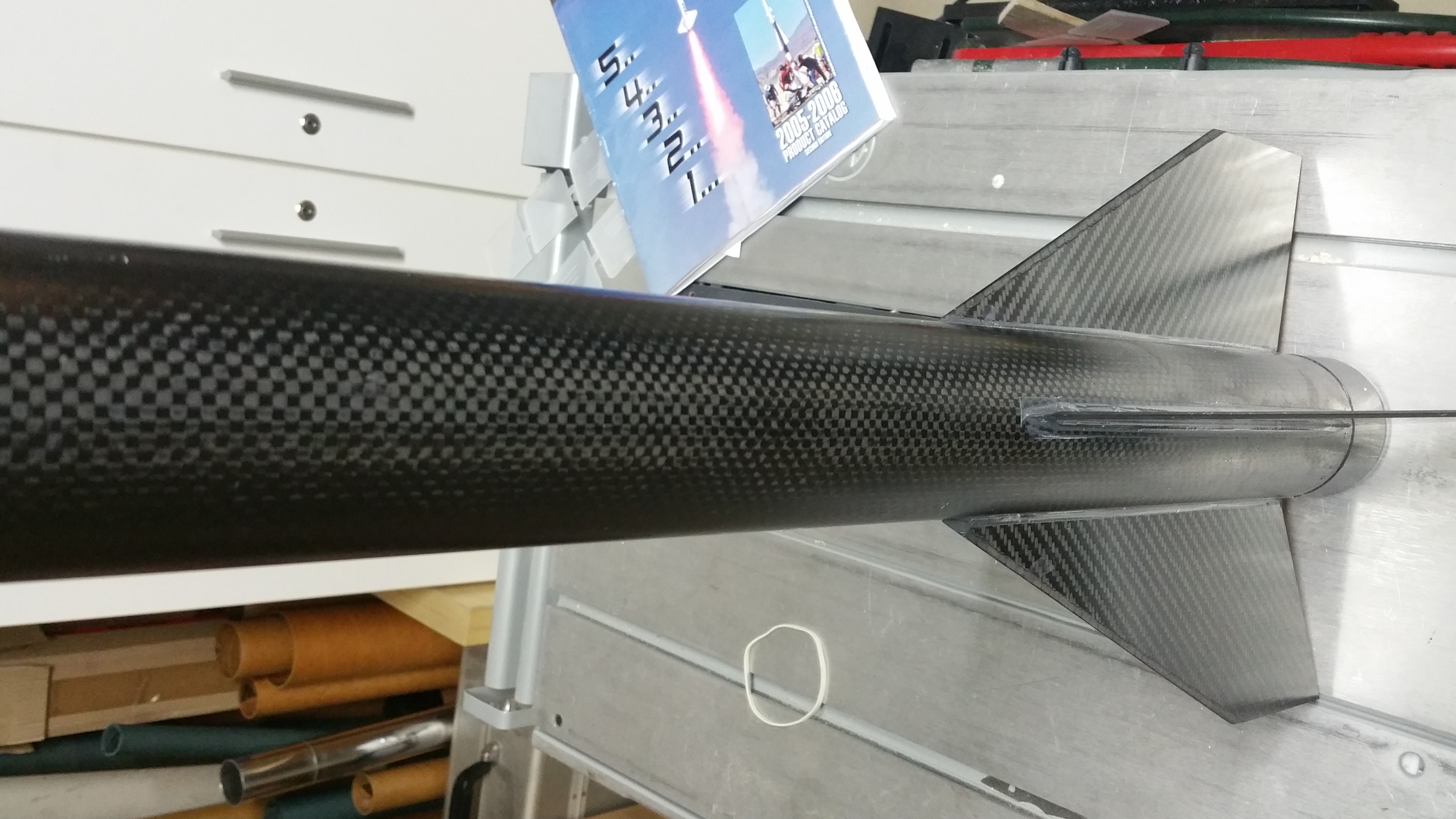 Die Flossen sind jetzt mit JB Weld in die Nuten geklebt. Der Kleber lässt sich gut verarbeiten, braucht aber Zeit beim aushärten. Für unseren Zwecke eigentlich Ideal.