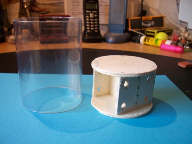So des Modul ist endlich fertig aber ich hab jetzt doch ein Problem mit der Größe: wenn der Fallschirm drin is (noch ohne Leinen) siehts so aus: Soll ich ein anderes Material nehmen und neue machen oder kann ich des Porblem irgendwie anders beheben? Kleiner als das krieg ich die SCHirme einfach nimmer Edit: Meint ihr der 45cm (oder noch besser: 55cm) Rundschirm vom Klima passt da rein???