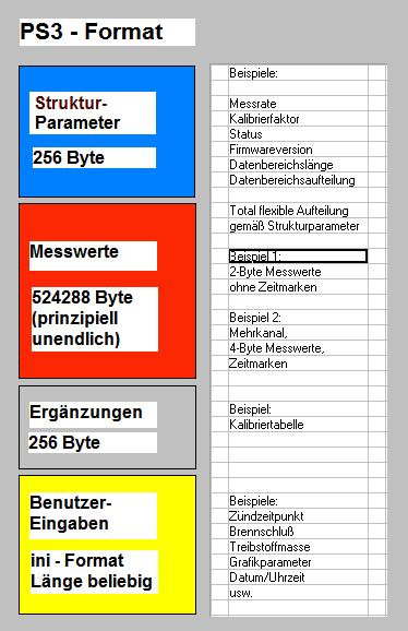 Kommen wir doch mal zu einem Format, das im wirklichen Leben zum Betrieb zweier Prüfstände bereits benutzt wird und offenbar bestens funktioniert: Das PS3 Format. Winfrieds Prüfstand sendet den Datenstrom in diesem Format, und mein Programm speichert die Datei, so oft sie aufgerufen wird, erneut in diesem Format. Das Übertragungsformat und das Gebrauchsformat sind also identisch:
