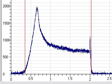 Wohl kaum, die zeitliche Auflösung der Kurve liegt in diesem Fall bei 50 Mikrosekunden und in der y-Achse bei 16 Bit oder etwa 0,5g (die Grafik zeigt nur zusammengefaßte Meßwerte an - unkomprimiert sind es etwa 200 Bildschirmbreiten). Peter kann die Kurve (natürlich die Meßwerte) direkt in seine Software einlesen und mit ein paar weiteren Parametern der Rakete die Flugkurve berechnen.