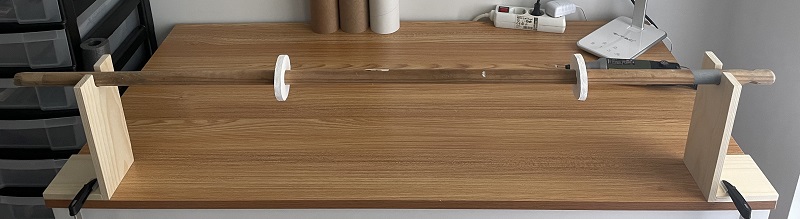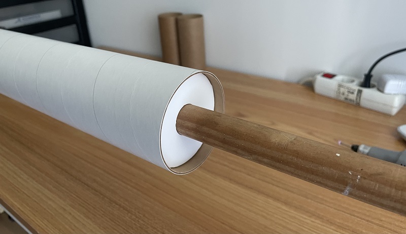 Ich habe heute eine kleine Vorrichtung für das laminieren der Rohre gebaut. Es ist jetzt nicht das Gelbe vom Ei, dass geht definitiv noch besser, aber es erfüllt seinen Zweck und man kann damit arbeiten.