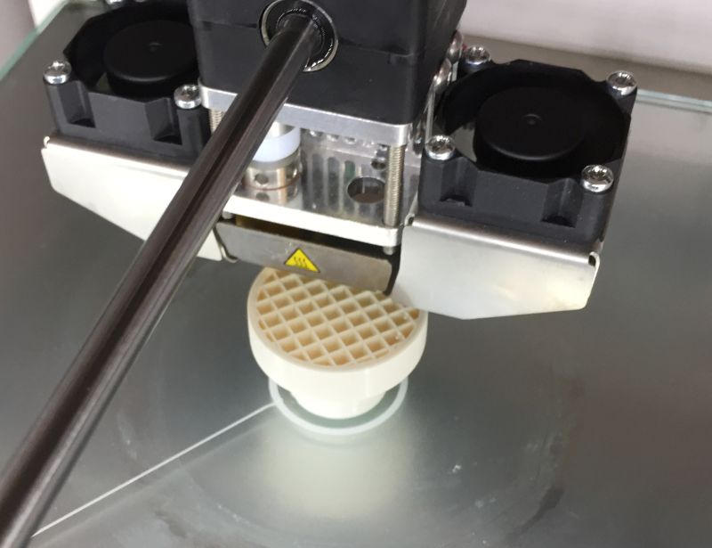 Ich habe hier noch PLA/PHA, soll so fest sein wie ABS aber so leicht zu drucken wie PLA. Damit drucke ich gerade eine 3"-Spitze, dauert aber 12 Stunden bis die fertig ist. Sieht schon sehr gut aus, bin gespannt wie glatt sie wird. Gestern habe ich auf die Schnelle mal eine kleine Spitze für ein 38er Rohr gedruckt, nichts besonderes optimiert, Schnellschuss, aber durchaus benutzbar. Ich bekomme demnächst noch eine CFK-Platte fürs Druckbett, dann sollte ABS auch problemlos gehen, testen werde ich es auf jeden Fall.