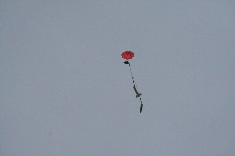 ... mit nachfolgendem crash. Man sieht noch die Splitter vom Fallschirmmodul fliegen: