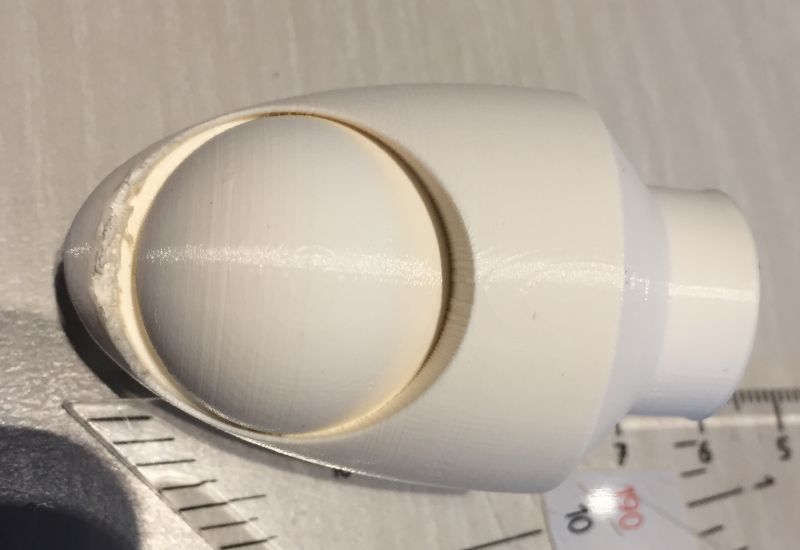 Ich habe für die Spitze PLA/PHA von Colorfabb benutzt, das lässt sich prima schleifen. Ich habs auf die Drechselbank gespannt und dann geschliffen, zum Schluss mit 1500er.