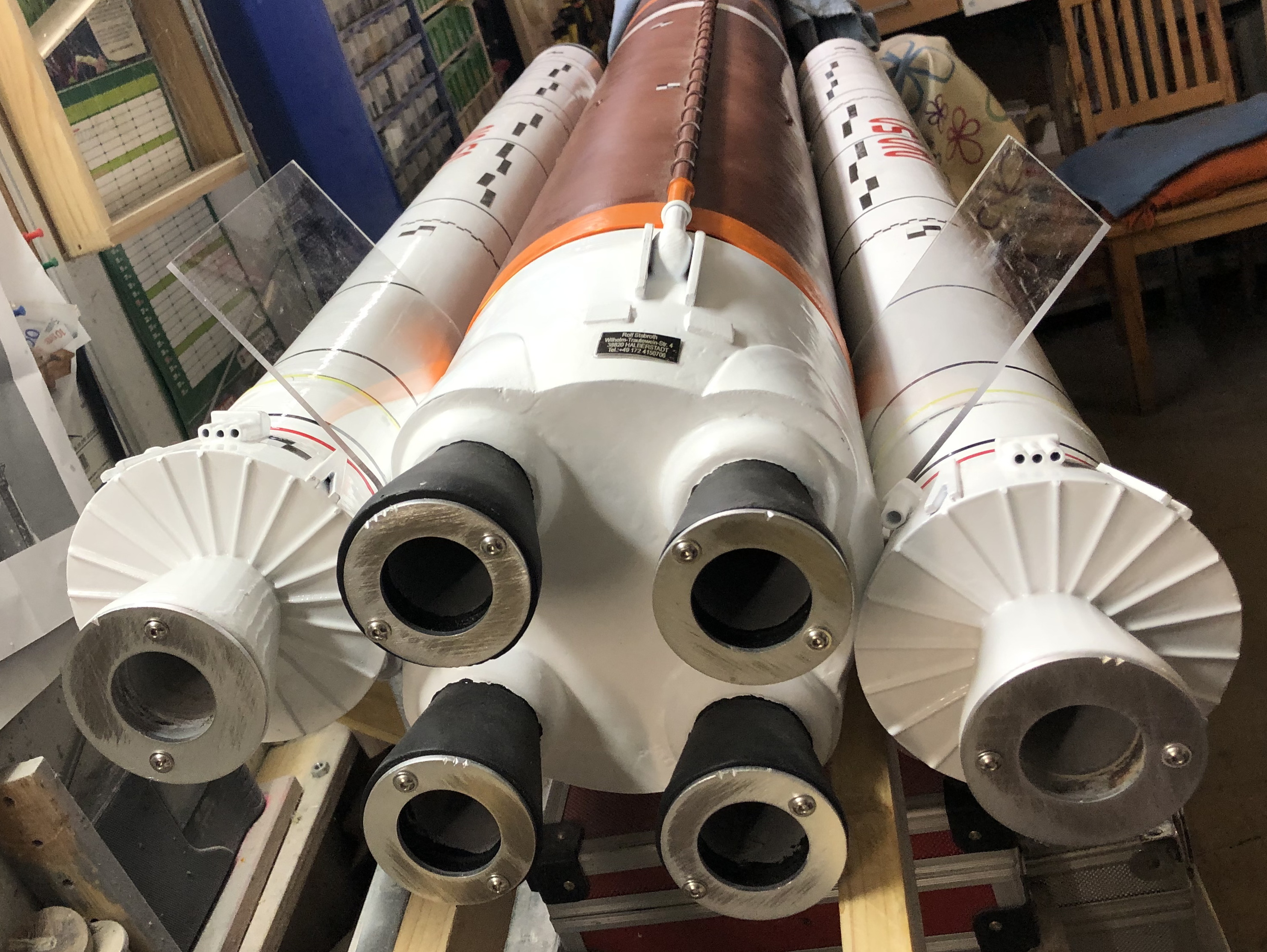 Das Fallschirmkonzept habe ich nochmals überarbeitet. Es ist vor dem Fallschirmsack eine Kolben Membrane eingebaut, welche die Aufgabe hat, die expandierenden Gase der Ausstoßladung nicht am Fallschirmsack vorbei zu lassen, sondern den Sack wie ein Sektkorken heraus zu schleudern und dabei die Tuben zu trennen.