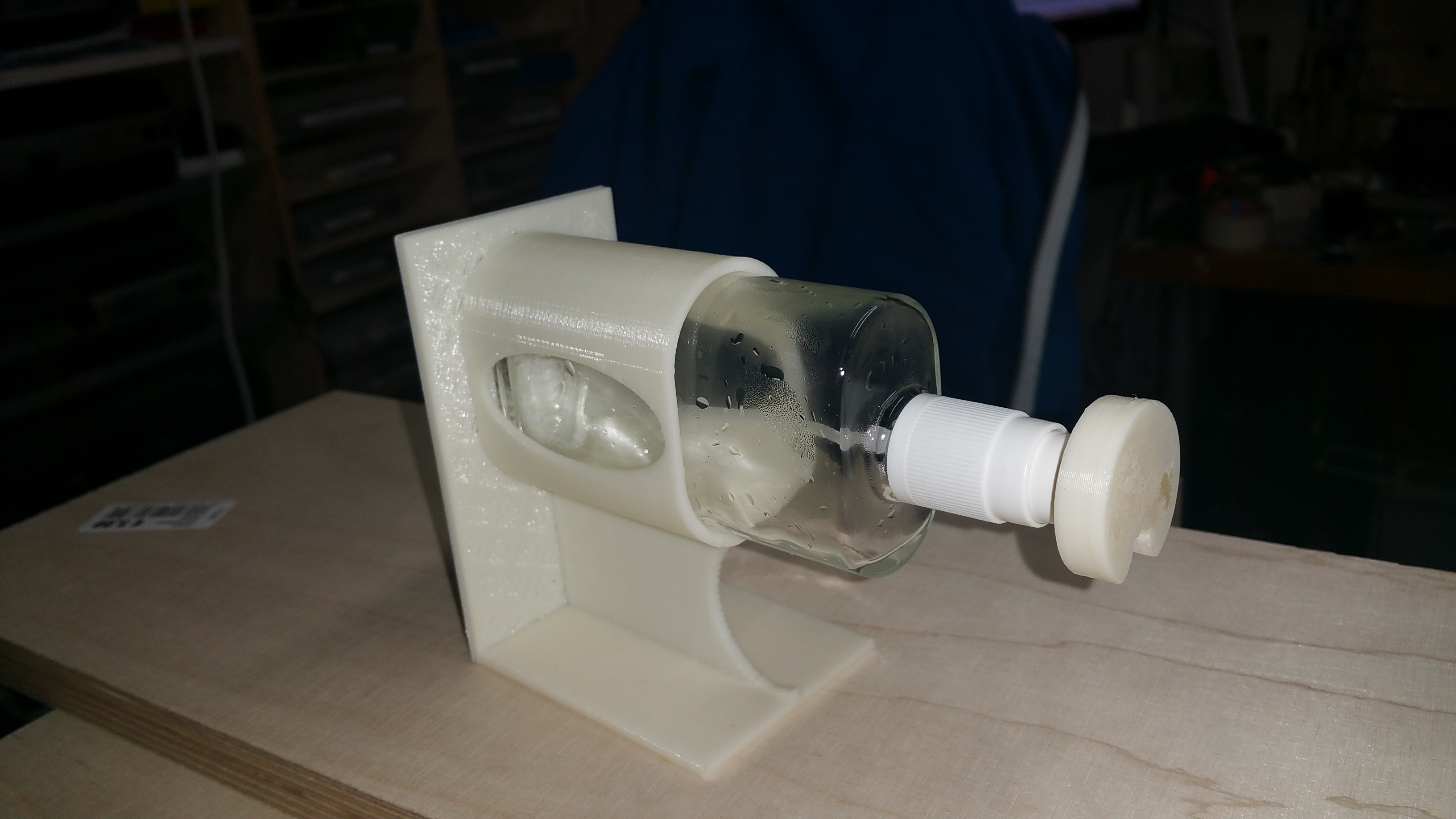 Habe einen Desinfektionsmittel Spender aus einer Deo-Pumpflasche gebaut. Brauch man heut zu Tage leider.