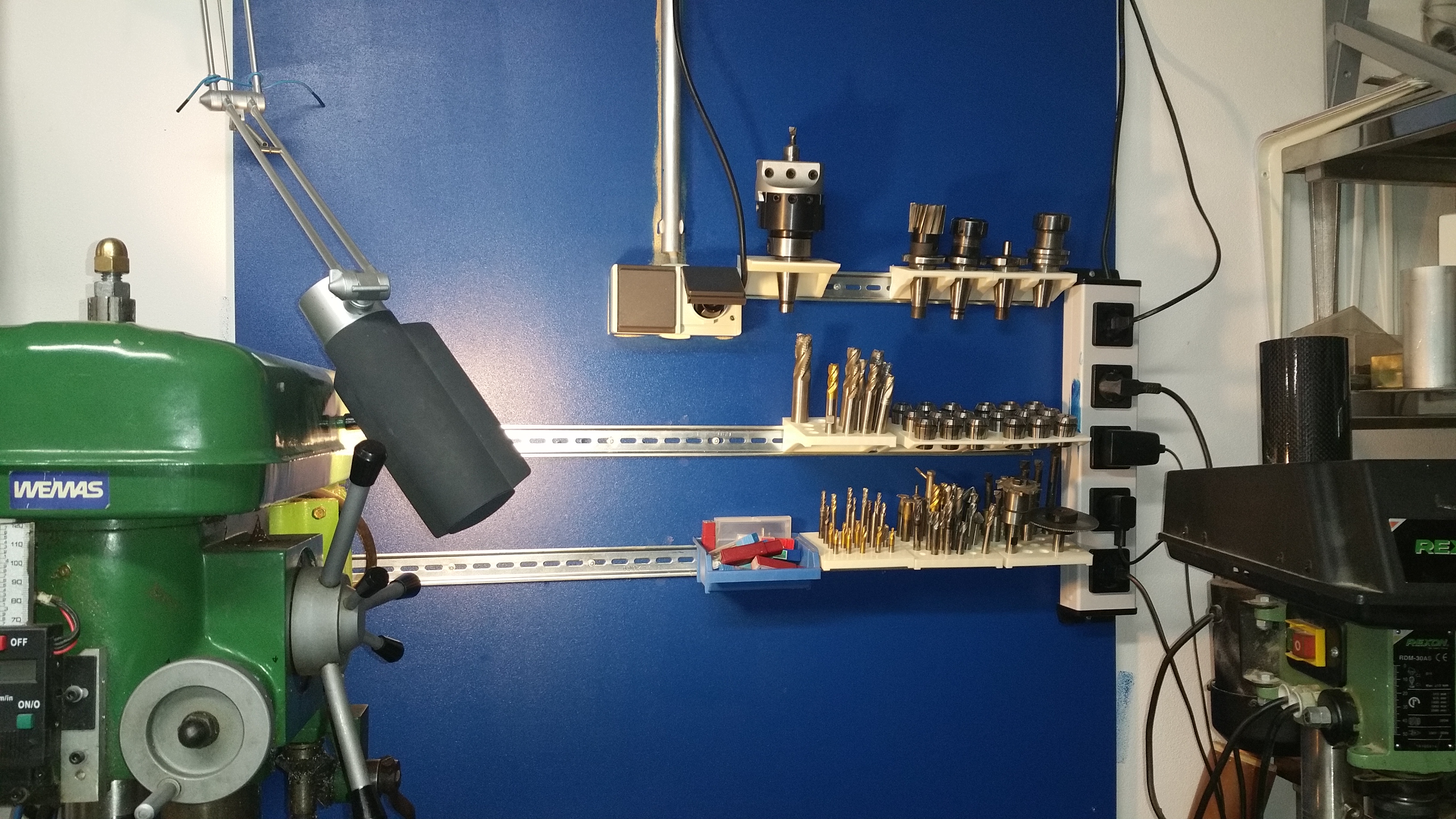 Sind einfach Hutschienen vom Elektriker. Die Halterungen individuell gedruckt.