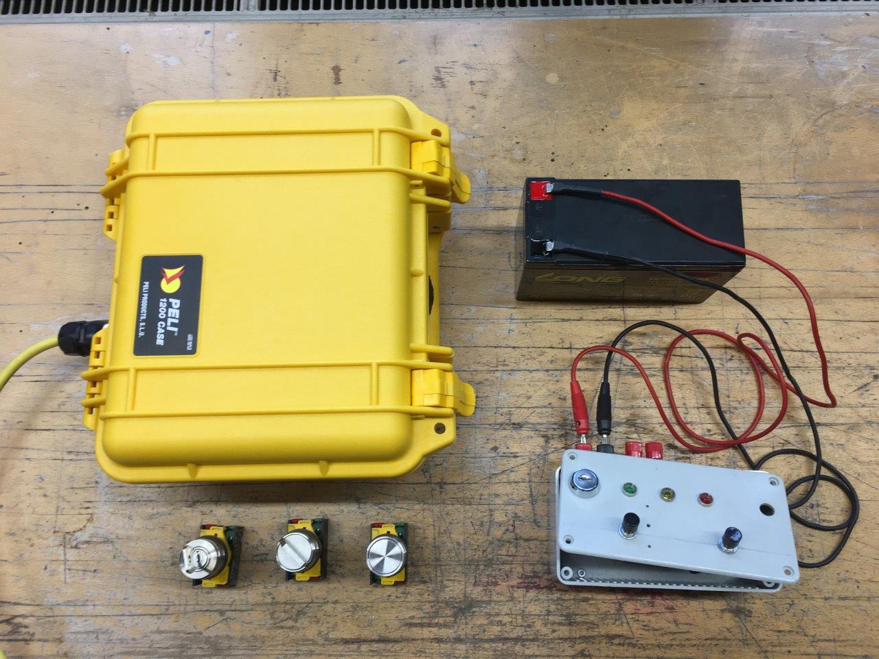 Das alte, vor über 10 Jahren für den T2-Kurs gebaute (rechts im Bild), hat seinen Dienst getan. Die Taster funktionieren z.B. nicht mehr zuverlässig. Um es auf einen modernen Stand zu bringen wird alles in ein neues Gehäuse mit integrierter Batterie und haltbaren Schaltern umgebaut. Viele Grüße Dennis |