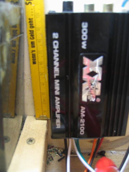 klar, heute ist mein Verstärker angekommen: Er hat 300 Watt Leistung, mehr als ausreichend für die Box und er ist kaum größer als ne Kippenschachtel